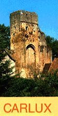 Située sur les premières hauteurs dominant la rive droite de la Dordogne, Carlux est une ancienne châtellerie qui dépendait de la vicomte de Turenne. De son château, théâtre de nombreuses luttes au Moyen Age et lors des guerres de Religion, il ne subsiste que le donjon et la tour d'entrée. Les restes d'un ermitage, l'église de fondation romane qui abrite une Pieta en bois peint, du XVIIe siècle et une cheminée du XIV° siècle, dite sarrasine, qui surmonte le pignon d'une maison, complètent le patrimoine architectural de la cité. |